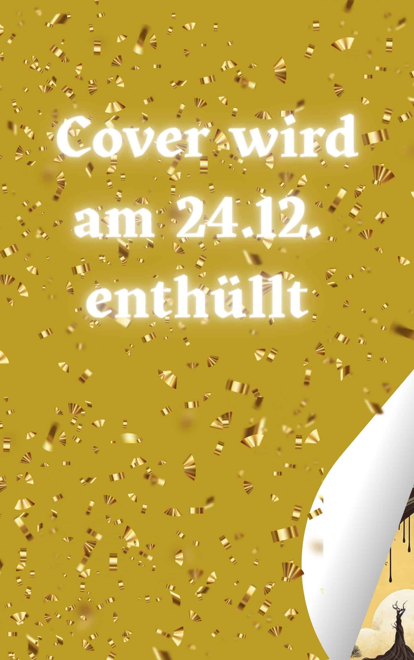 Mit Canva Pro habe ich ein Teaser-Cover erstellt. Dazu habe ich über das Cover des Buchs eine Maske gelegt, sodass man nur eine kleine Ecke sehen kann. Der Text weist zudem darauf hin, wann genau das Cover enthüllt wird.
