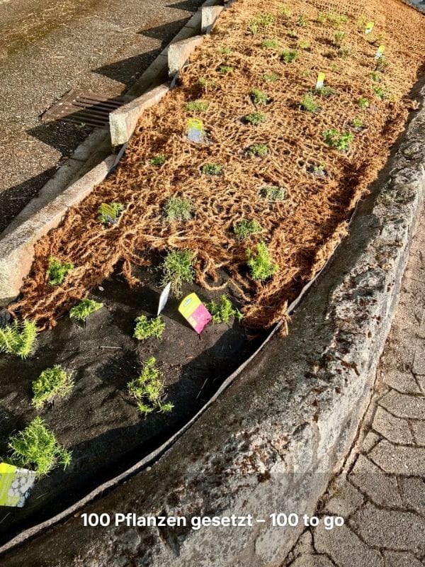 Und weil ich schon auf der Baustelle sein musste und genervt war von dem ganzen Gestrüpp, das immer wieder unseren Eingang zuwucherte, habe ich nebenbei den gesamten Hang vor unserer Wohnung von der armenischen Brombeere befreit und bienenfreundlich angelegt.