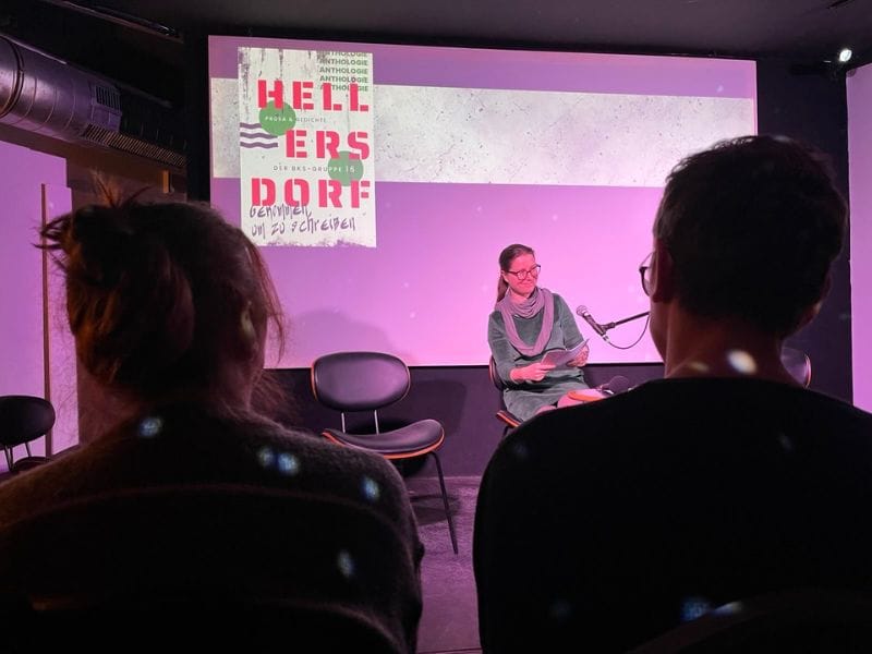 Im März fand mit ziemlicher Verspätung die Lesung zur Anthologie Hellersdorf – gekommen, um zu schreiben statt. Das Buch ist bereits 2024 erschienen – und das Schwester-Projekt zu Tintenspuren.* Während ich in Tintenspuren,* das im selben Jahr herausgekommen ist, über meine persönlichen Erfahrungen im Studiengang »Biografisches und kreatives Schreiben« berichte, wollte ich in Hellersdorf die schönsten Texte unserer Gruppe, dem 16. BKS-Jahrgang, präsentieren und einen Querschnitt zeigen. Denn eine der wunderbarsten Erfahrungen während dieses Studiengangs war, zu erleben, wie unterschiedlich die Menschen schreiben, mit welchen Themen sie sich tragen – und wie facettenreich unsere Texte waren.