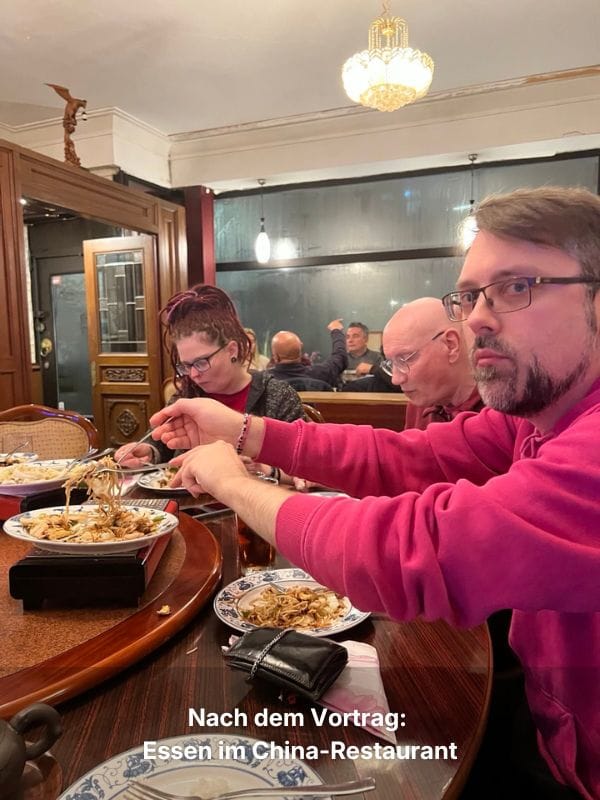 Sein Ableben war auch Gesprächsthema am Nebentisch. Dort saß eine Gruppe älterer Herrschaften und zwischen ihnen entspann sich eine derart lustige Konversation, dass ich tat, was ich sonst selten tue: Ich schrieb mit. Aus dem Dialog habe ich eine kleine Szene gestaltet, die dich hoffentlich genauso amüsiert wie mich.