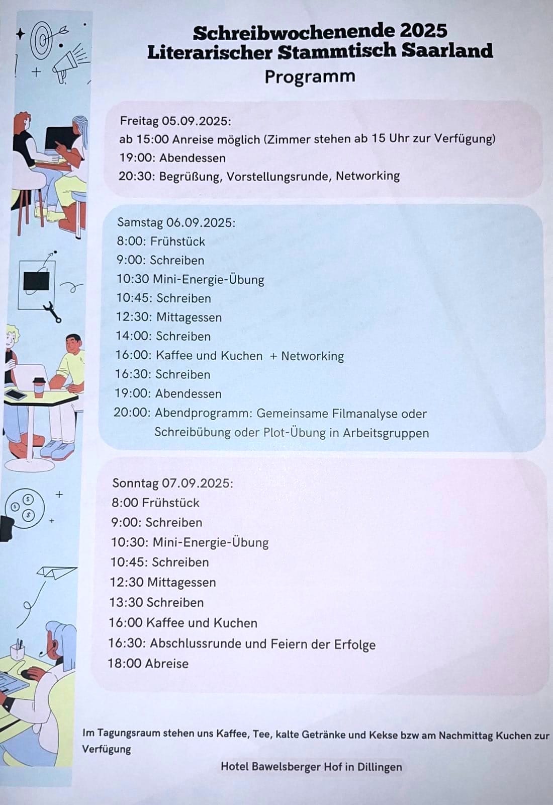 Die wunderbare Beatrice Sonntag hat alles für uns organisiert, von Hotel bis hin zu den kleinen Schreibübungen. In diesem Jahr schlossen sich neben den bereits bekannten Autorinnen auch neue Schreibende aus der Saarbrücker Autor:innen-Gruppe an.