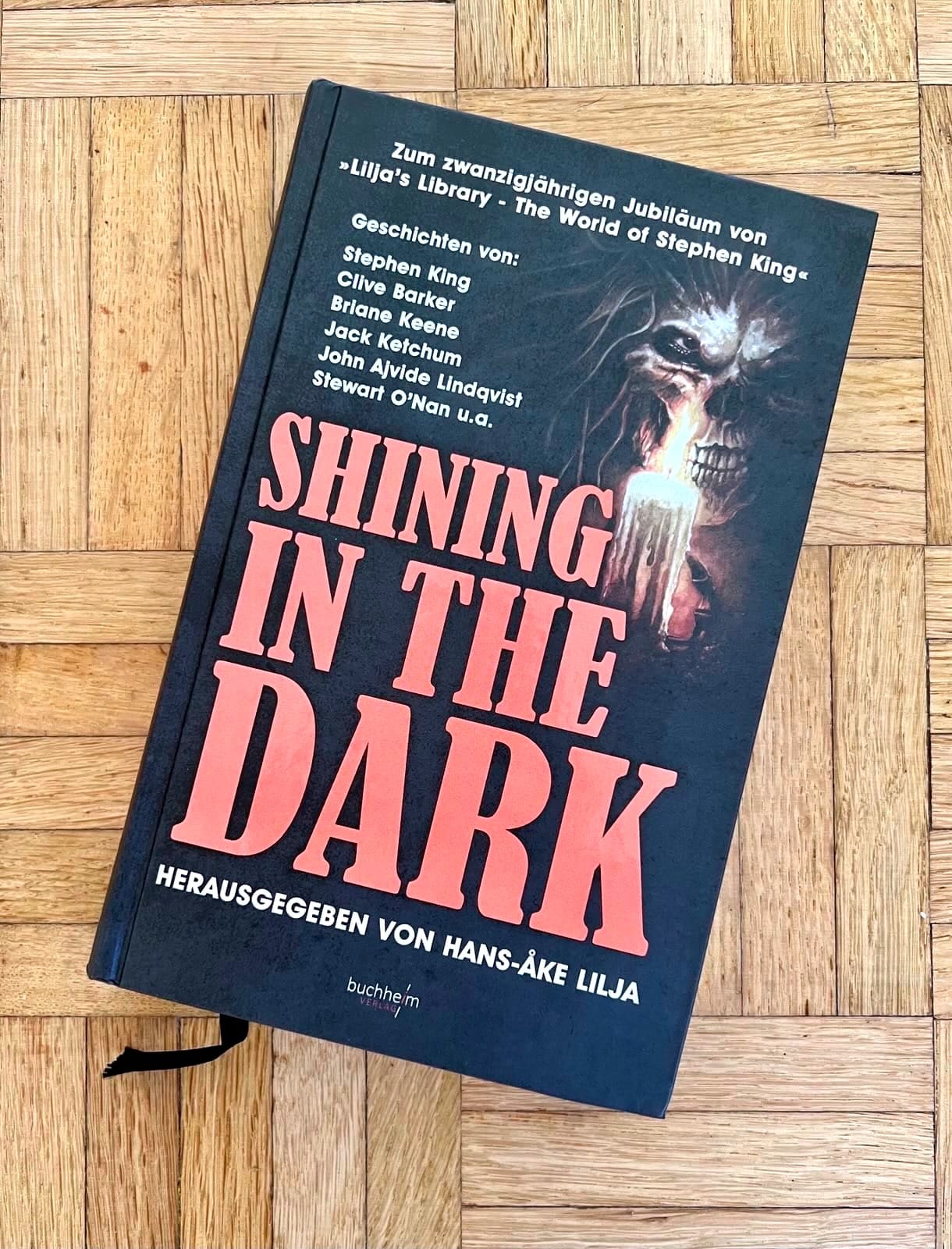 Ich bin immer gern bereit, besondere Buchhandlungen zu unterstützen; kaufe aber leider wenig physische Bücher. Denn gerade dicke Bücher lese ich lieber auf meinem e-Reader. Doch beim Drachenwinkel habe ich eine Außnahme gemacht – schließlich ist in Dieflen wirklich sehr wenig Laufkundschaft: Ich habe mir die Anthologie Shining in the Dark* gekauft. Da ich selbst gerade an kürzeren Erzählungen arbeite, interessiert mich immer sehr, wie andere Autorinnen solche Texte aufbauen. Außerdem lockte die Sammlung mit einem bisher unveröffentlichten Text von Stephen King.